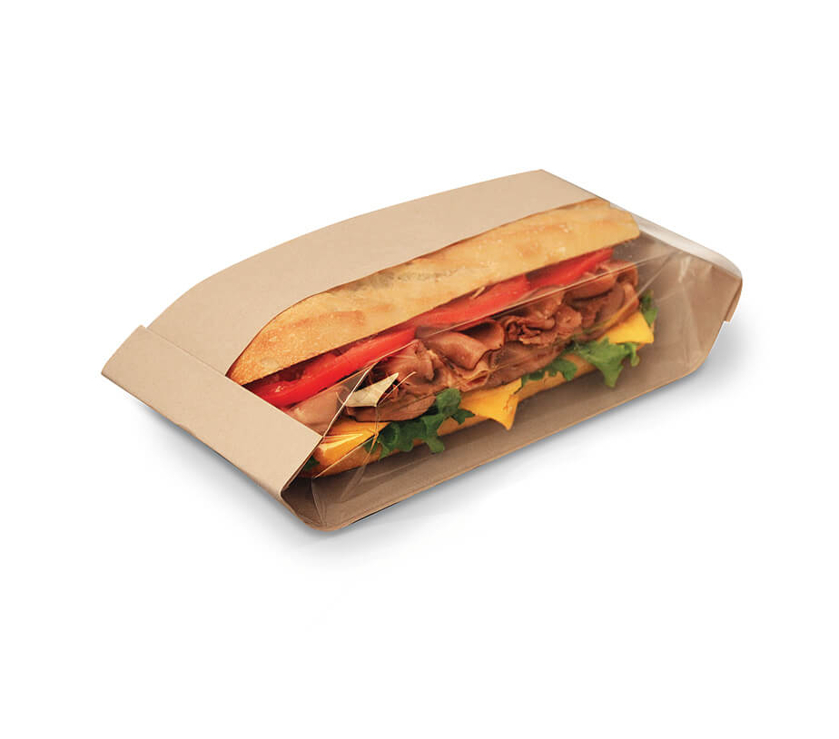 Bagcraft Papercon 300091 3 1/2″ x 2 1/4″ x 7 1/4″ Dubl View ToGo! Kraft Window Half Submarine / Bakery Bag – 500/Case