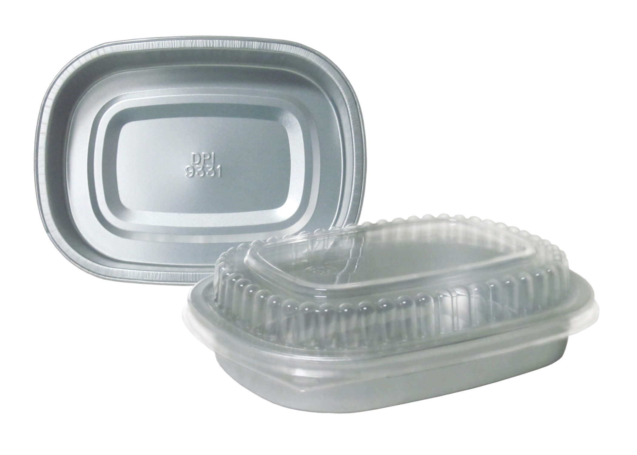 Durable Packaging 9331-SL-100 23.3 oz. Smooth Silver Small Entree / Take Out Pan with Dome Lid – 25/Pack