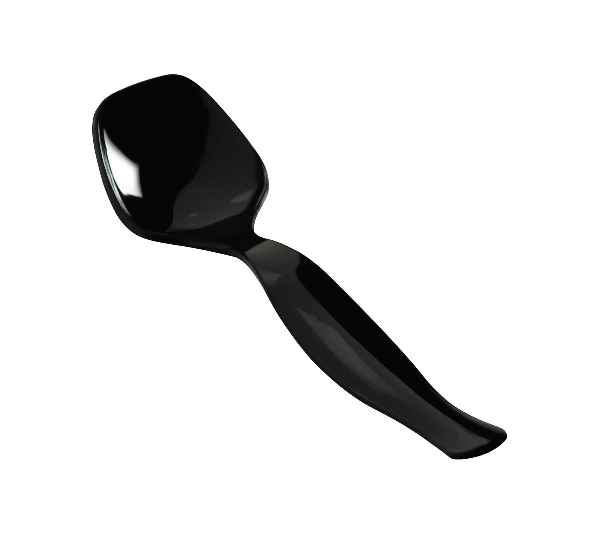 Get the tools to serve those delicious meals, side dishes, desserts and appetizers. This Fineline 3302-BK Platter Pleasers Black Plastic 8 1/2″ Serving Spoon is essential to run a smooth serving experience. While it’s comfortable grip aids your employees and guest, it’s elegance is sure to impress. Be careful: These utensils look so real, your guest may comment when they will see the waiters easily disposing them.