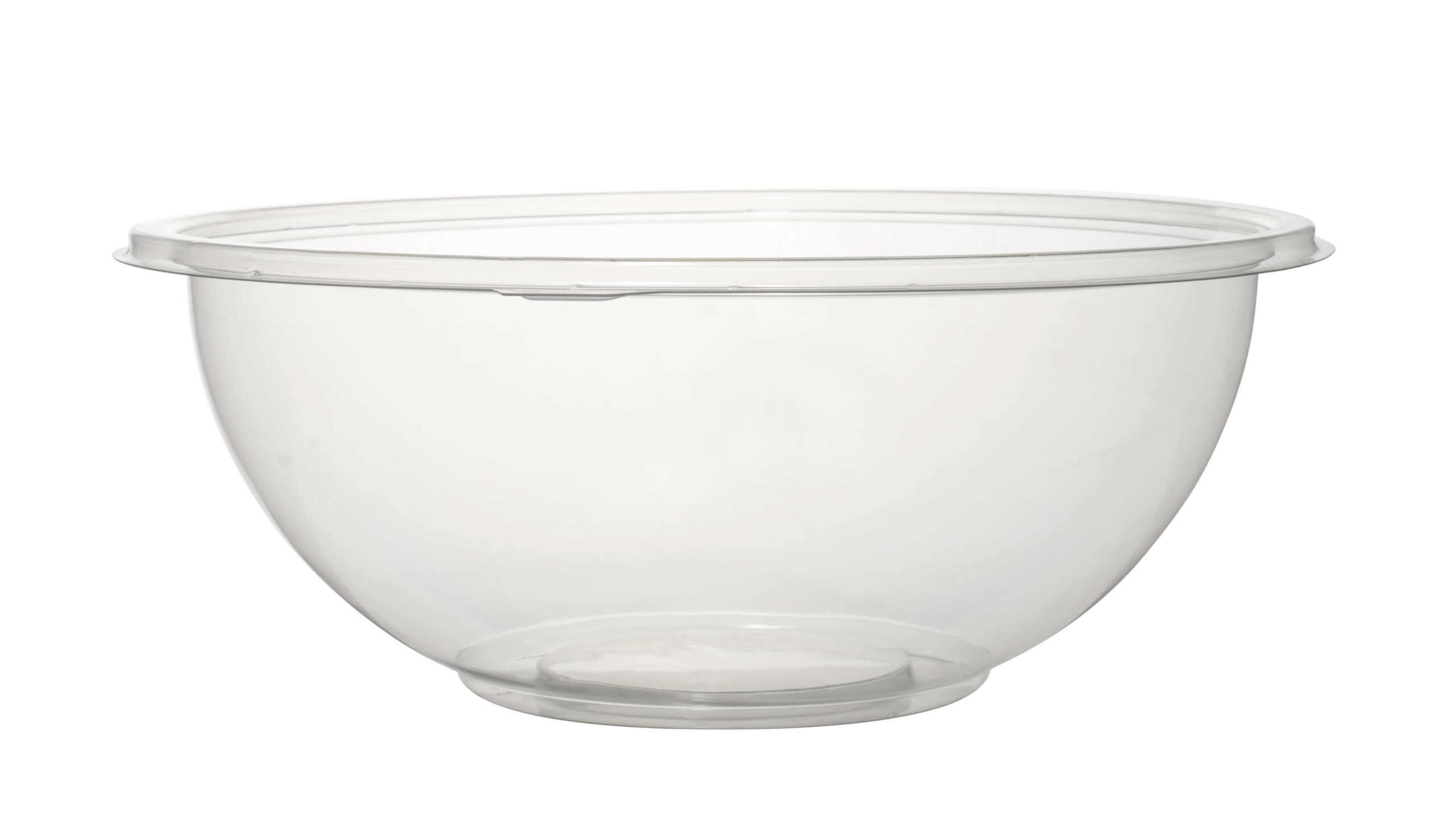 Package your salads, desserts, fruits, and more with this Fineline 5160-CL Super Bowl 160 oz. Clear PET Plastic Bowl which is presentable yet convenient. These bowls make a beautiful display on the shelf and even better, they are designed with the consumer in mind. Your guests will be able to enjoy their meal out of the dish without needing to use additional plates etc.