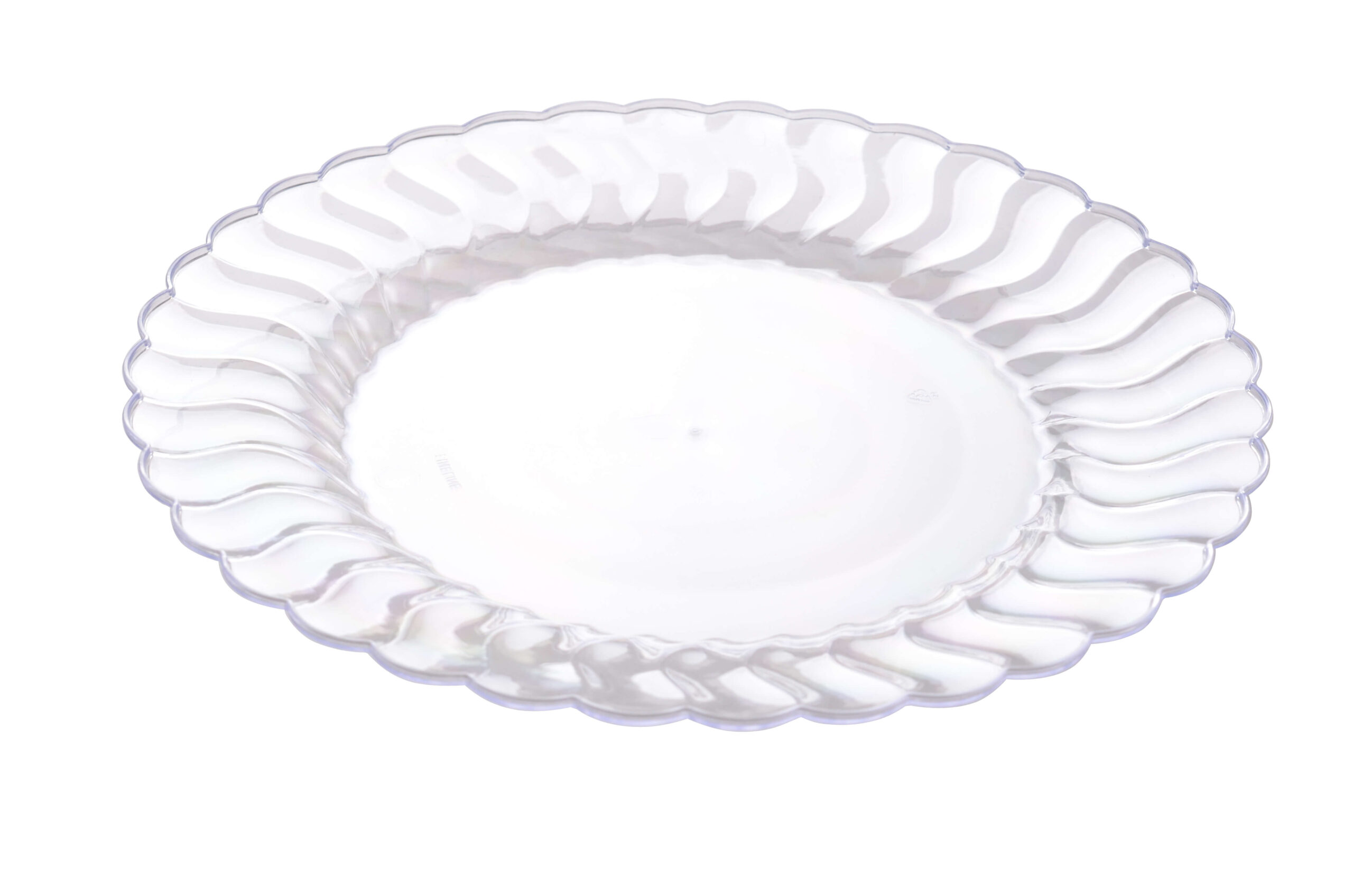 When expectations are heightened, it’s time for a setting that’s enlightened. This Fineline Flairware 209-CL 9″ Clear Customizable Plastic Plate will set your party’s ton¬e of elegance! As a perfect solution for your next party, catered event or gathering, this plate is sure to add a touch of spice to your food’s appearance! With it’s simple yet up-to-date design and high-gloss finish it resembles true china dishes. Still, this plate is disposable treating your staff to an easy clean-up. Your waiters too will enjoy the ease of handling these plates. Although they’re made of heavy duty plastic, when compared to china, they are lightweight, stackable and easy to handle. It’s the ideal for serving your hot or cold food or even presenting some miniatures or hors d’oeuvres.