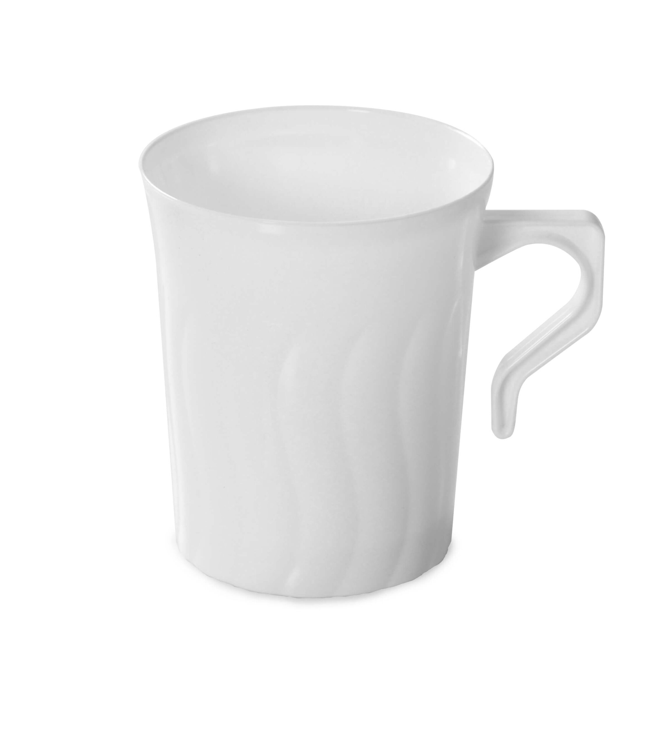 For some coffee come with a biscuit, for others coffee come with these Fineline Flairware White 208-WH 8 oz. Plastic Coffee Mug! Fineline’s mugs feature a beautiful design and unique handle. These mugs mimic real china, yet they’re made of plastic. Your guest will enjoy that these are clean and sterile as they were never used before. Aside, they won’t believe that these are not china mugs! You’re staff will be in awe how easy cleanup will be. They’re disposable, convenient and affordable!