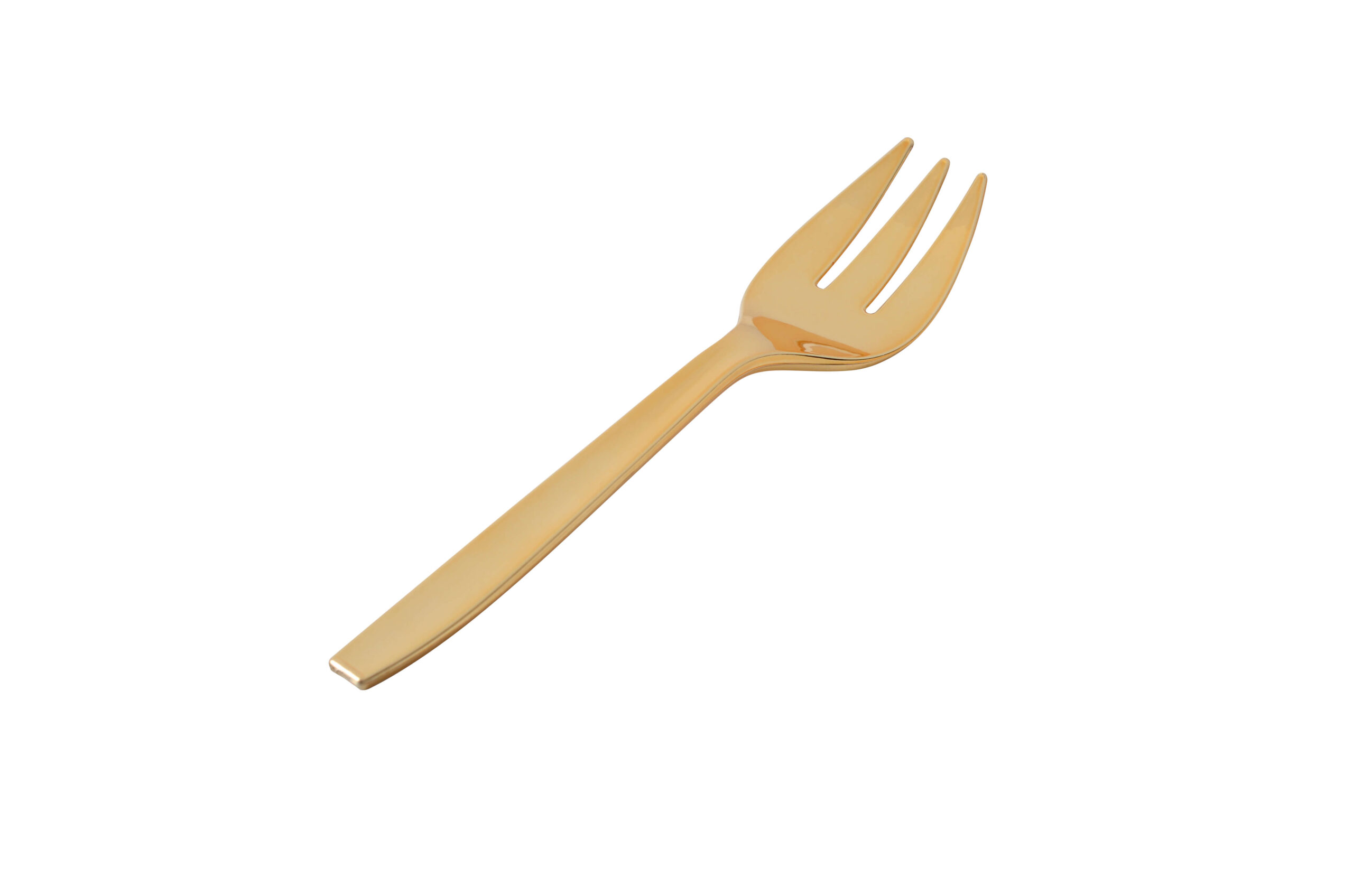 Get the tools to serve those delicious meals, side dishes, desserts and appetizers. This Fineline Golden Secrets 769 9″ Gold Look Heavy Weight Serving Fork is essential to run a smooth serving experience. While it’s comfortable grip aids your employees and guest, it’s elegance is sure to impress. Be careful: These utensils look so real, your guest may comment when they will see the waiters easily disposing them.
