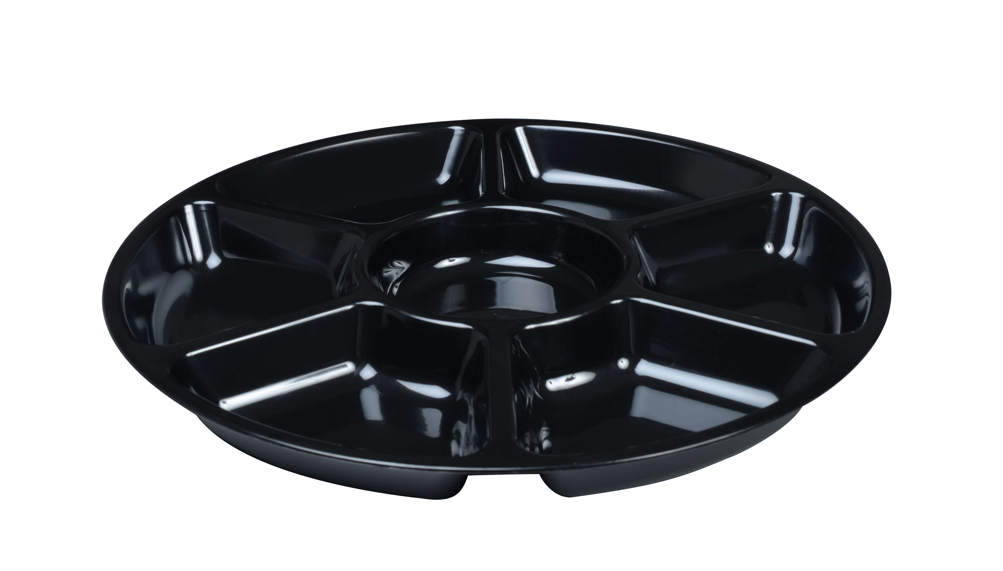 How can I showcase several sweets in one big dish? Don’t bother! Get Fineline Platter Pleasers 3510-BK 16″ 7 Compartment Black Polystyrene Deli / Catering Tray! This tray has 6 compartments which are evenly divided around the tray’s rim to display multiple types of nuts, candies, chips, appetizers etc. Plus, there is one smaller round compartment in the center making it perfect if you want to add dips, sauces, or even blueberries, pomegranates or cherry tomatoes.