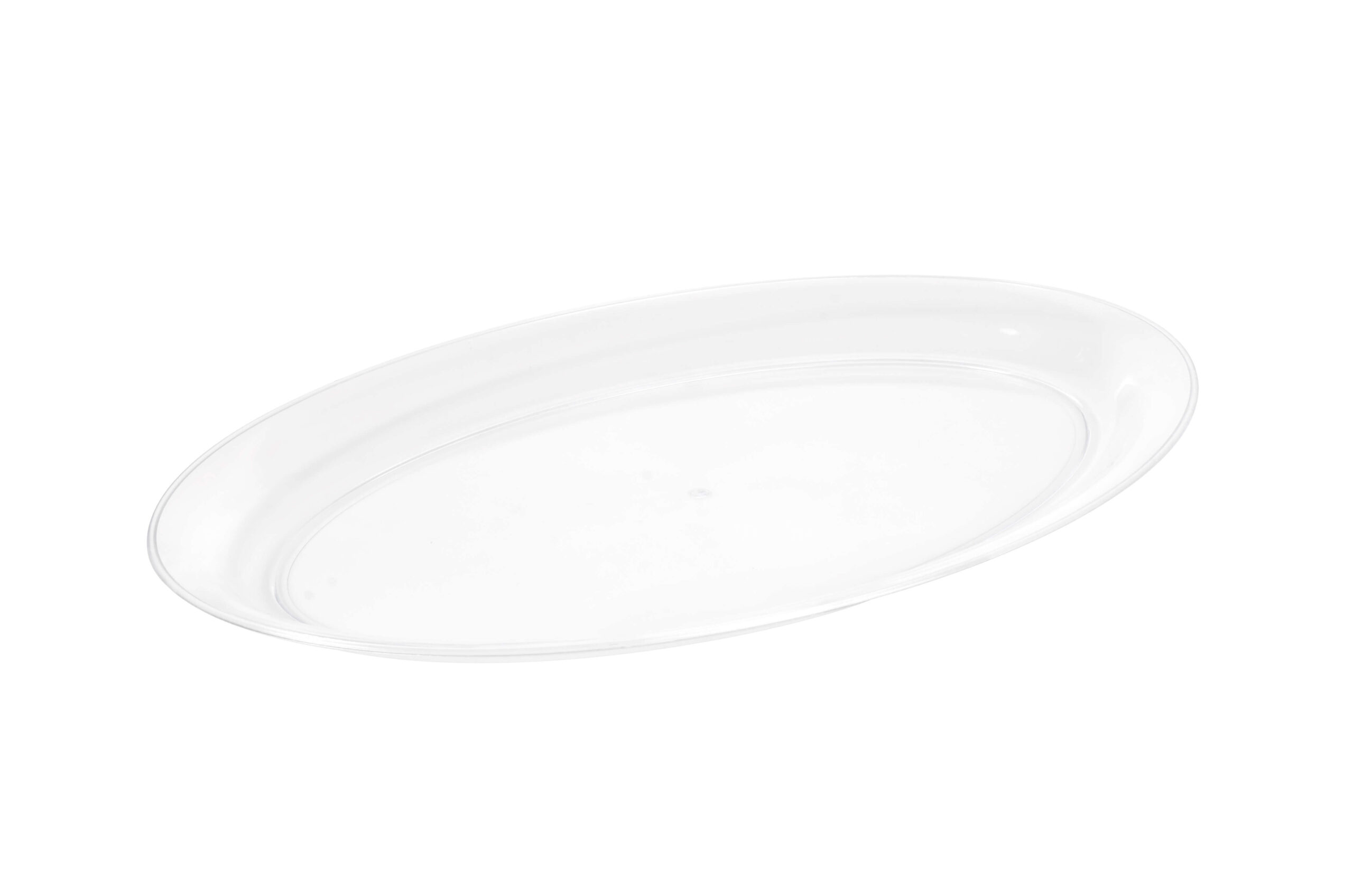 How can I prepare the table for a sophisticated up to date event? Give your event a feel of tomorrow’s trend with the elegant look of a Platter Pleasers 3514-CL 14″ x 21″ Plastic Clear Oval Tray! Constructed with heavy plastic, yet durable to reuse, these trays are ideal for buffet, party, catered events or any decorative food display. These serving trays emphasize the cutting edge of style and originality without compromising on quality or practicality. In addition, Splyco stocks them in a variety of colors and sizes.
