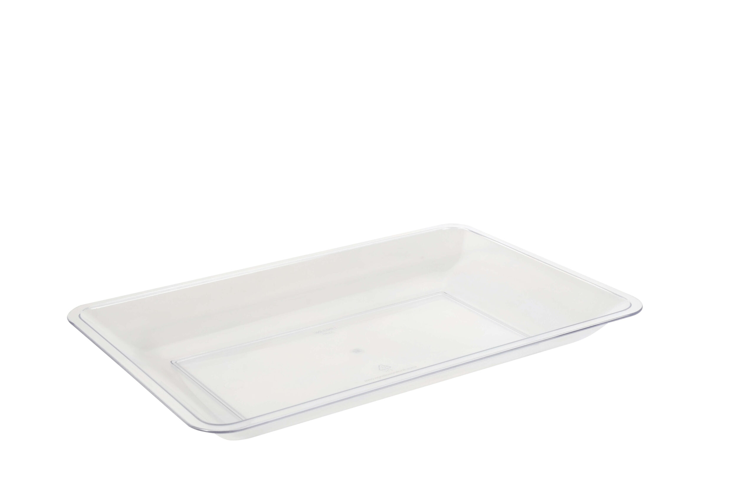 How can I prepare the table for a sophisticated up to date event? Give your event a feel of tomorrow’s trend with the elegant look of a Fineline Platter Pleasers 3518-CL 12″ x 18″ Plastic Clear Rectangular Tray! Constructed with heavy plastic, yet durable to reuse, these trays are ideal for buffet, party, catered events or any decorative food display. These serving trays emphasize the cutting edge of style and originality without compromising on quality or practicality. In addition, Splyco stocks them in a variety of colors and sizes.