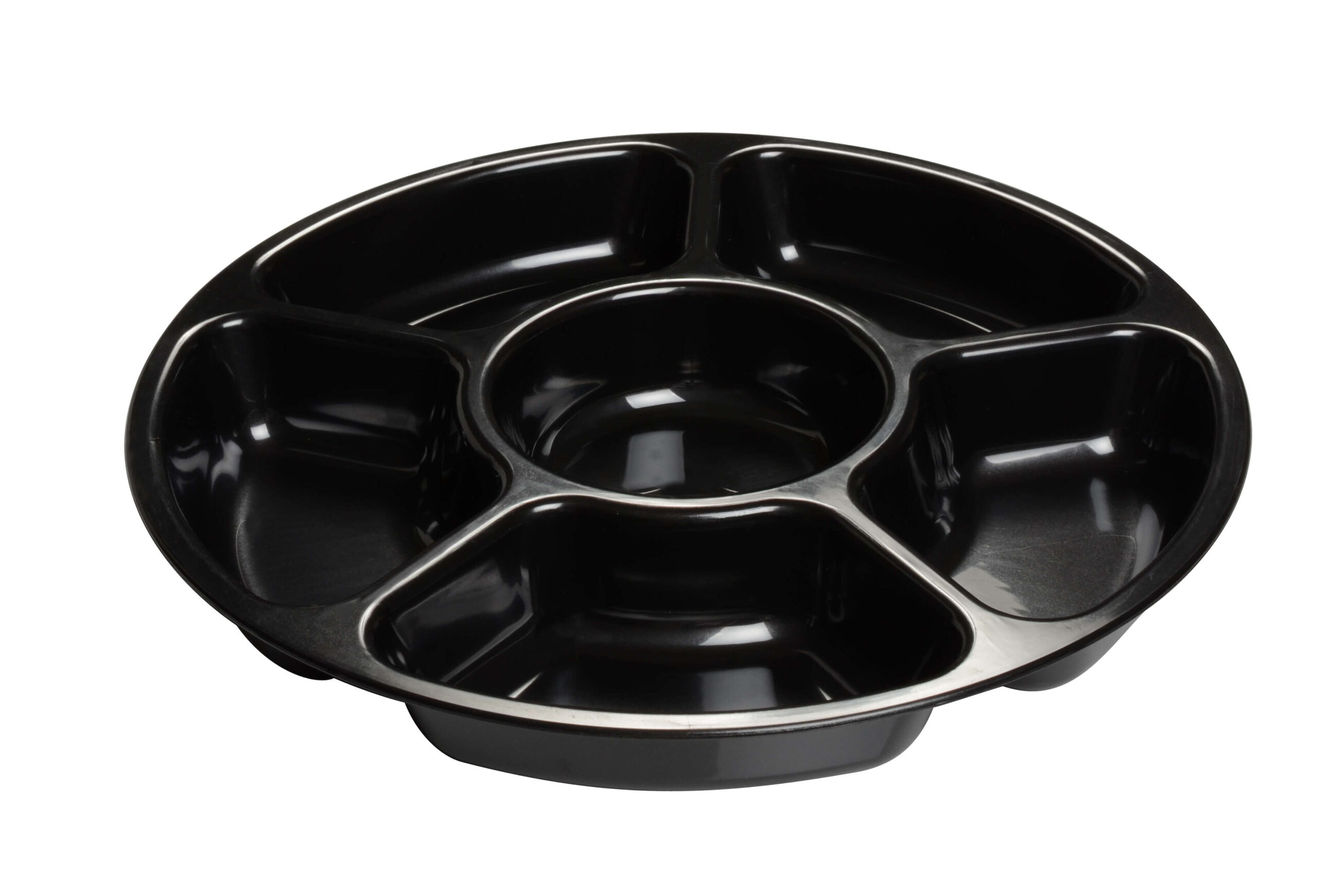 How can I showcase several sweets in one big dish? Don’t bother! Get Fineline Platter Pleasers 3521-BK 12″ 6 Compartment Black Polystyrene Deli / Catering Tray! This tray has 5 compartments which are evenly divided around the tray’s rim to display multiple types of nuts, candies, chips, appetizers etc. Plus, there is one smaller round compartment in the center making it perfect if you want to add dips, sauces, or even blueberries, pomegranates or cherry tomatoes.
