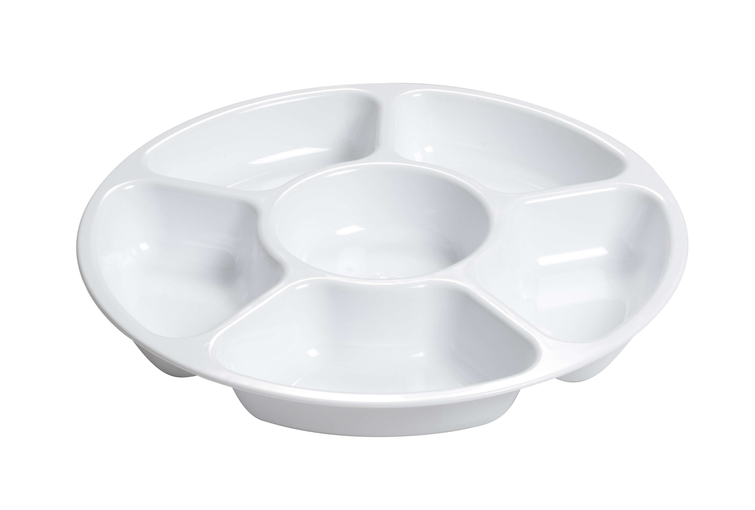 How can I showcase several sweets in one big dish? Don’t bother! Get Fineline Platter Pleasers 3521-WH 12″ 6 Compartment White Polystyrene Deli / Catering Tray! This tray has 5 compartments which are evenly divided around the tray’s rim to display multiple types of nuts, candies, chips, appetizers etc. Plus, there is one smaller round compartment in the center making it perfect if you want to add dips, sauces, or even blueberries, pomegranates or cherry tomatoes.