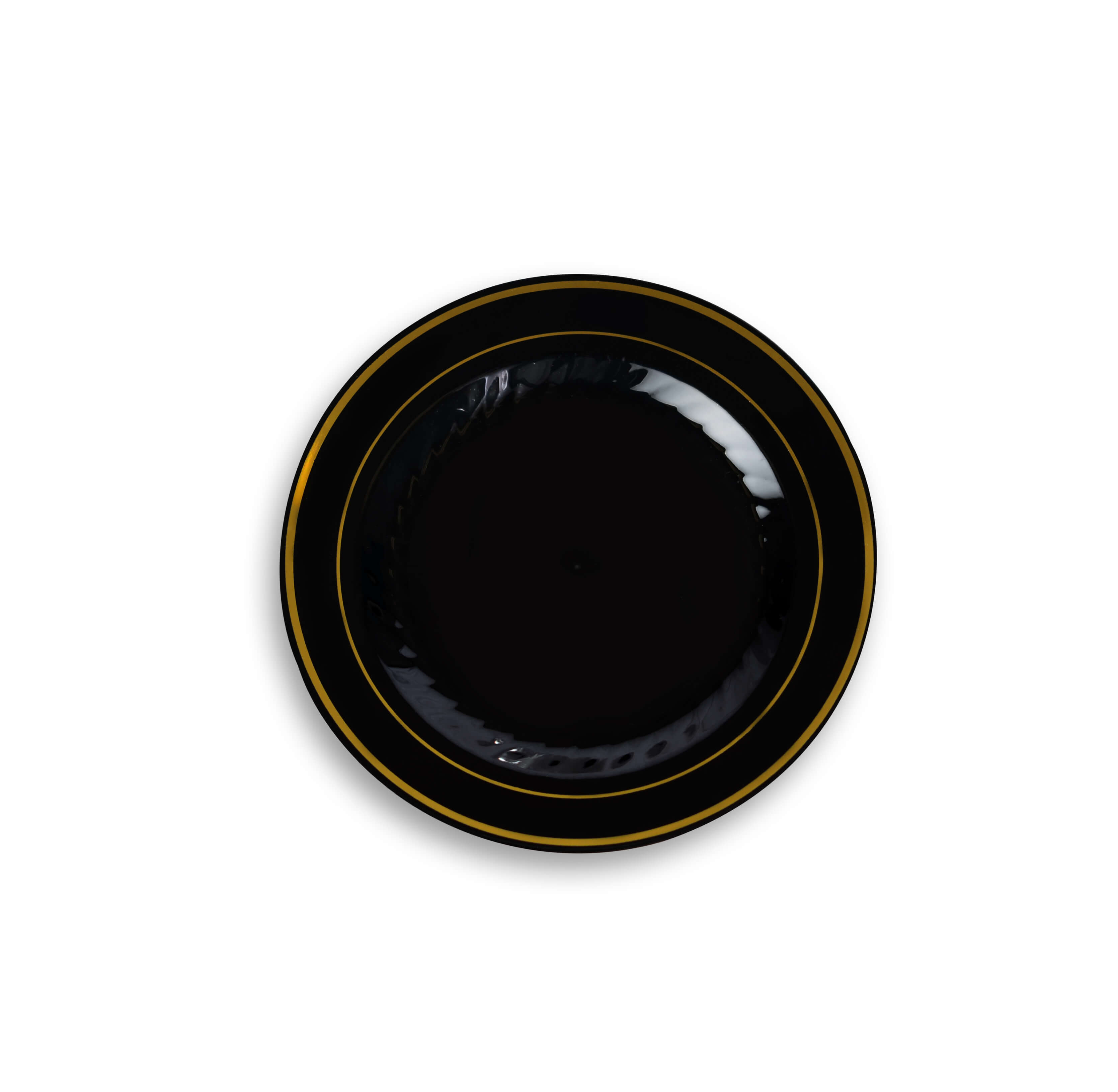 Fineline Silver Splendor 507-BKG 7″ Black Customizable Plastic Plate with Gold Bands – 150/Case