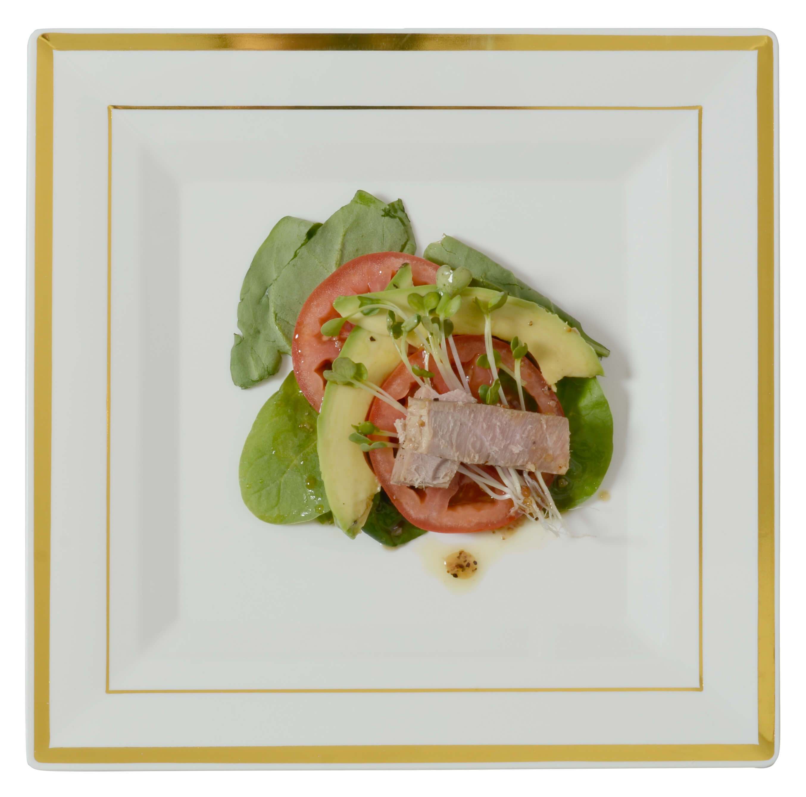 Let yourself be inspired by the cultured contours of this square plate collection. Adding elegance to class and style to the classic, this up-to-the-minute, updated version of disposable china is stunning in its simplicity.