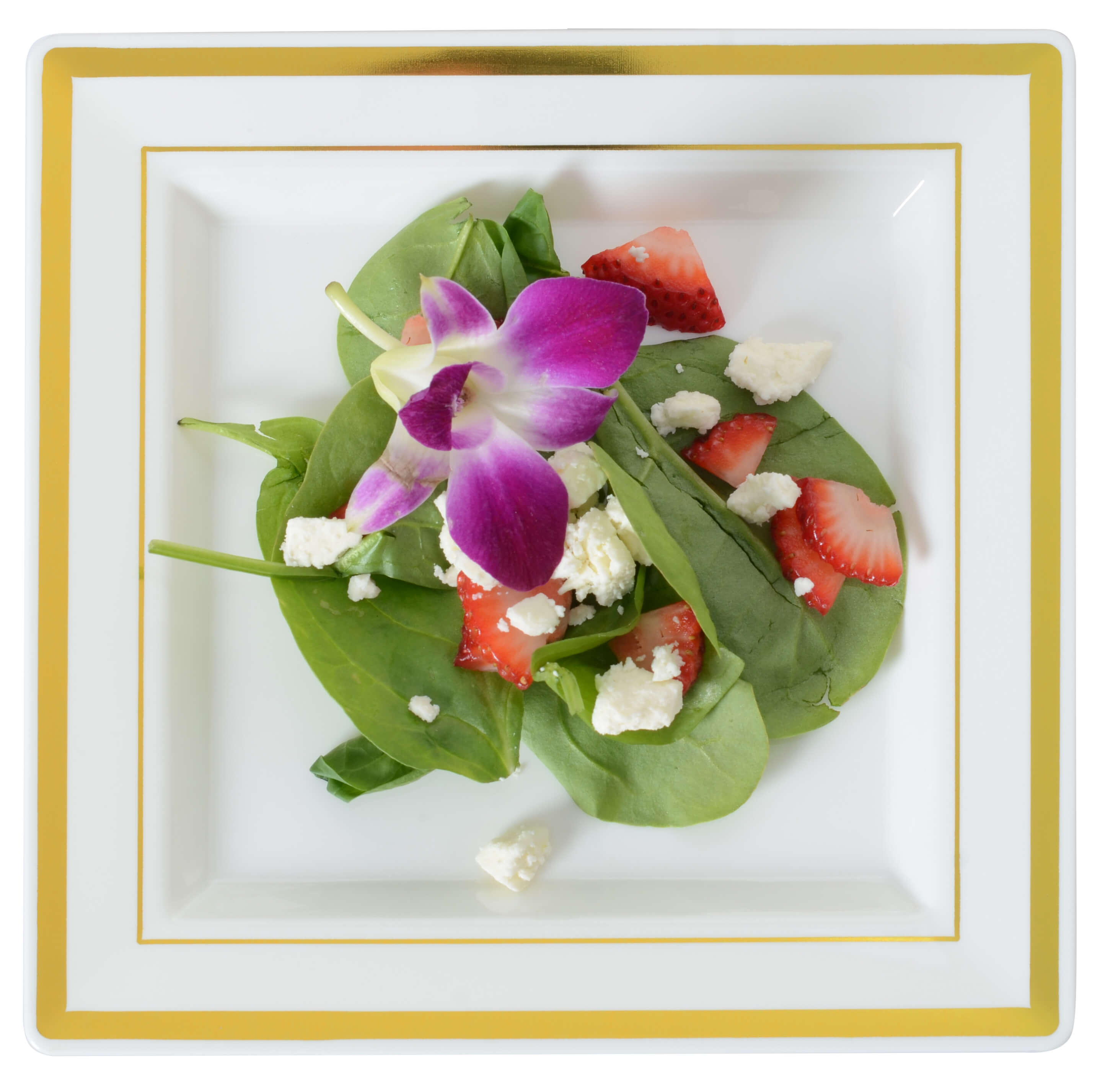 Let yourself be inspired by the cultured contours of this square plate collection. Adding elegance to class and style to the classic, this up-to-the-minute, updated version of disposable china is stunning in its simplicity.