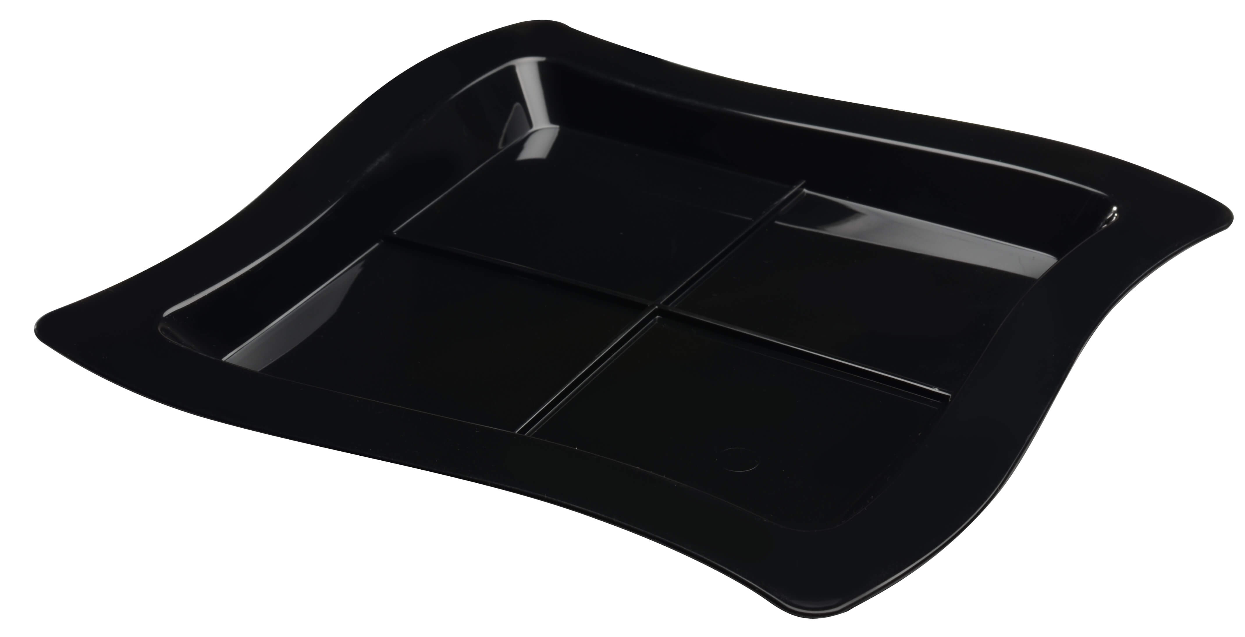 How can I perfectly portion my appetizer? Use this Fineline Tiny Temptations 6206-BK 7 1/4″ x 7 1/4″ Tiny Tangents Disposable Black Plastic Tray! These are great not only for appetizers, but also for miniatures, hors d’oeuvres, desserts, or any of your savory dish! Enjoy the neat look of your edibles in this perfect tray which has raised edges to prevent products from falling off.
