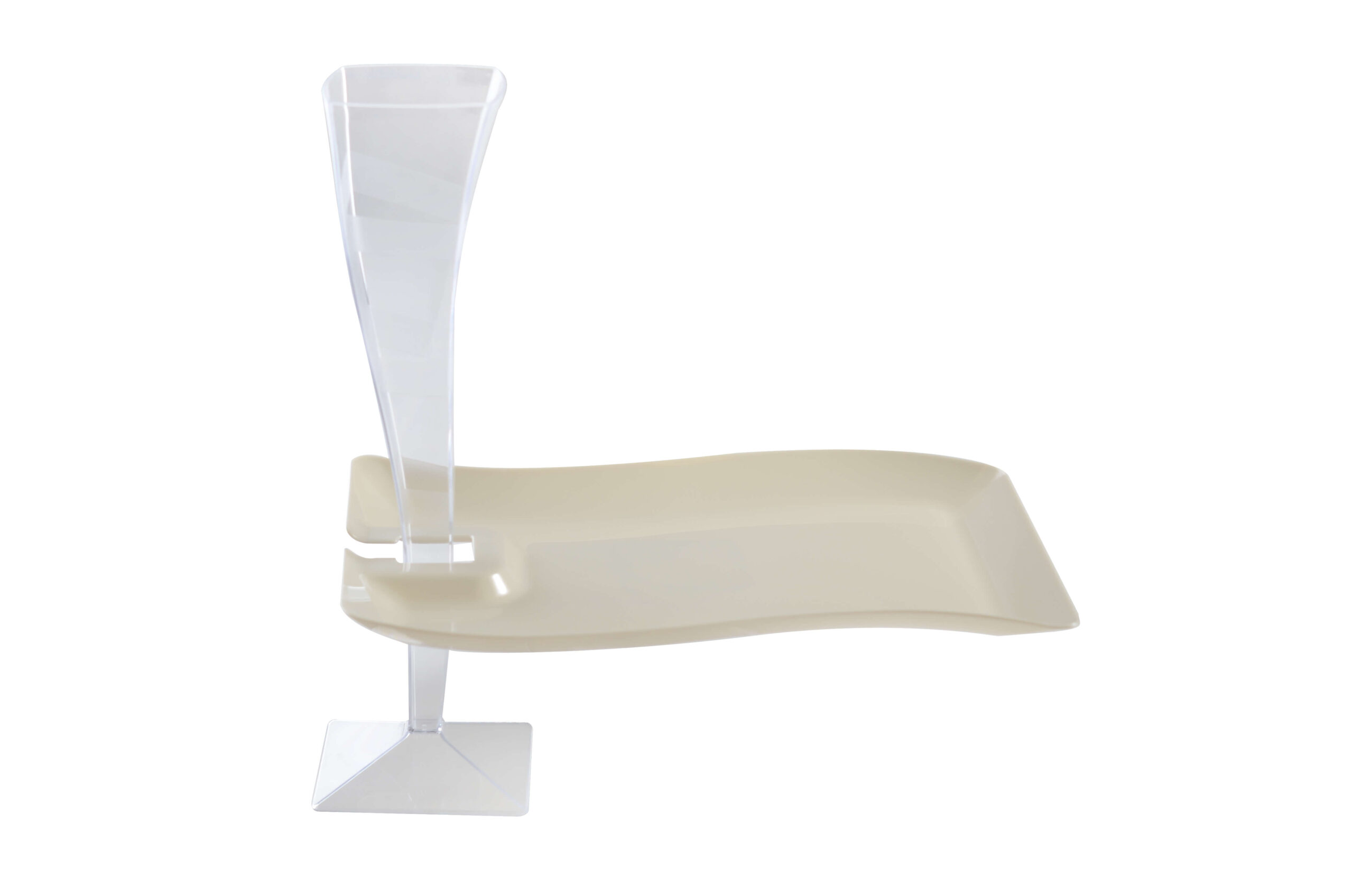 Fineline Wavetrends 1409-BO 6″ x 9 1/2″ Bone / Ivory Customizable Plastic Cocktail Plate with Stemware Hole – 120/Case