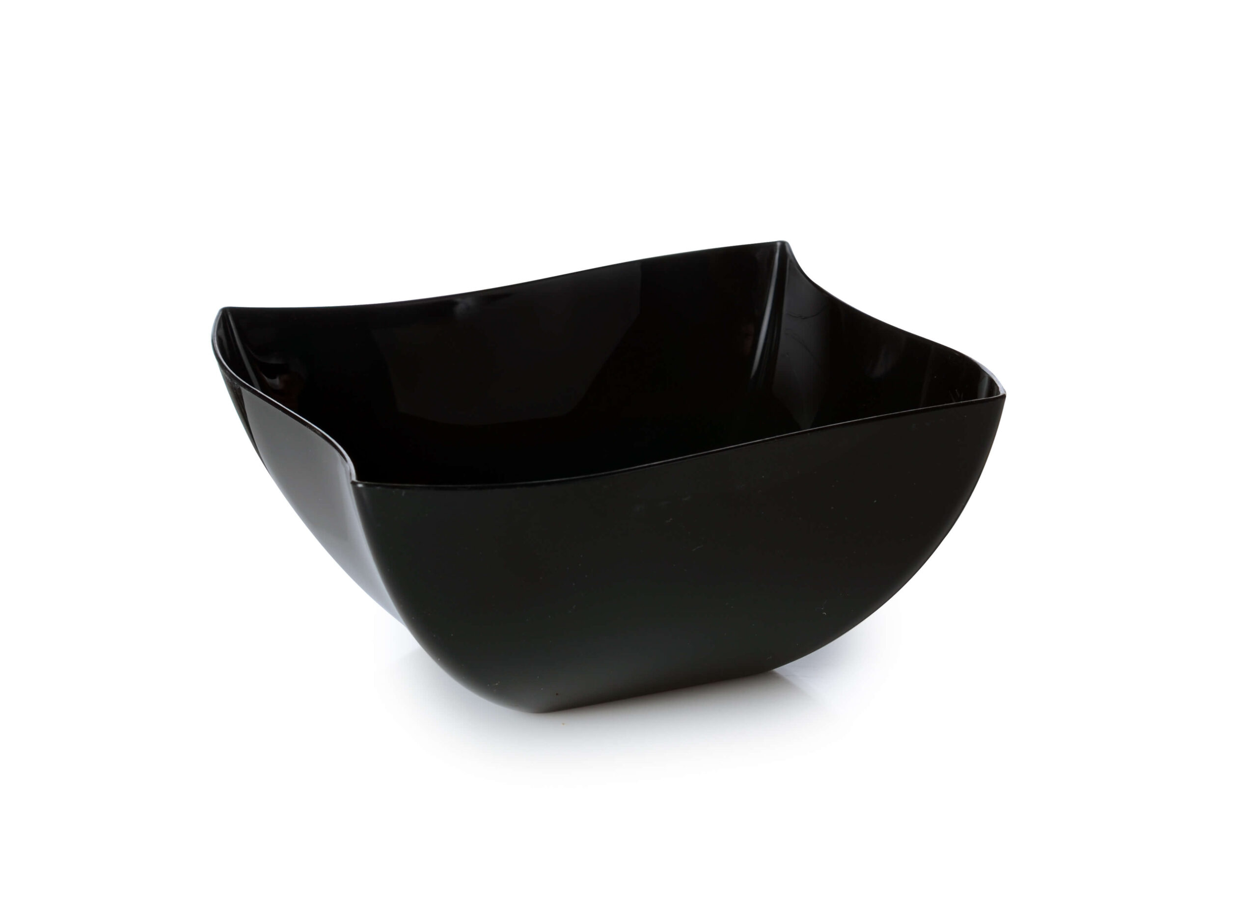 Package your salads, desserts, fruits, and more with this Fineline Wavetrends / Tiny Temptations 116-BK 16 oz. Black Plastic Bowl which is presentable yet convenient. These bowls make a beautiful display on the shelf and even better, they are designed with the consumer in mind. Your guests will be able to enjoy their meal out of the dish without needing to use additional plates etc.