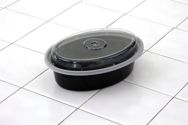 Newspring OC-16-B 16 oz. Black 6 3/4″ x 4 3/4″ x 1 7/8″ VERSAtainer Oval Microwavable Container with Lid – 150/Case