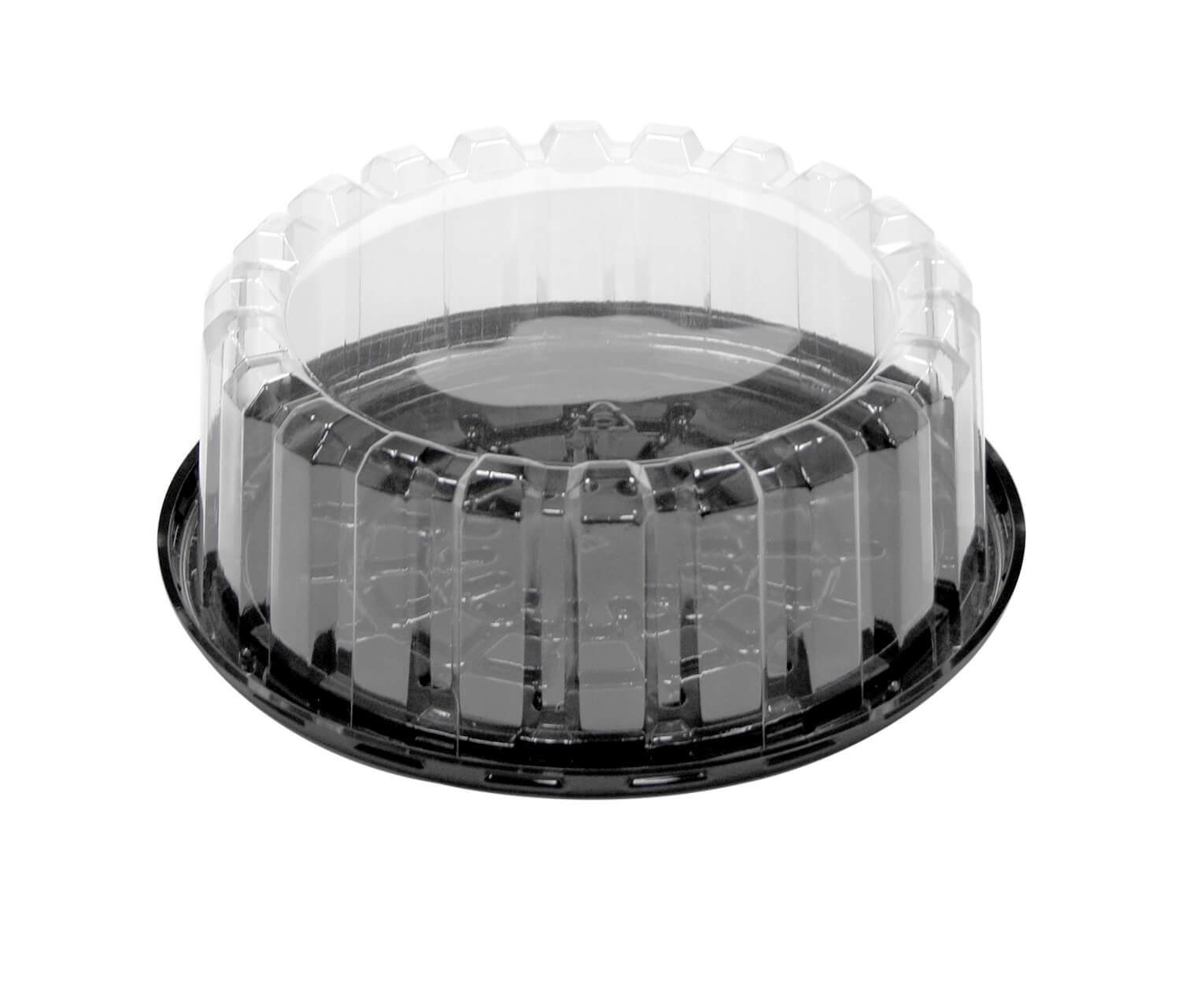 Pactiv Showcake APET Plastic Round Cake Container Black/Clear, 8″ Inside x 9″ Outside x 2.66″ Height – 100/Case