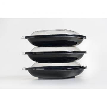 Sabert C98024TR150 Bowl2 24 oz. Black PETE Square Tamper Evident Bowl with Lid – 150/Case