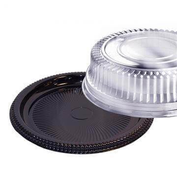 Sabert Nova Plus Thermoformed Round Flat Platter with Dome Lid Black Platter Clear Dome, 13.5″ Diameter x 3.5″ Height – 25/Case