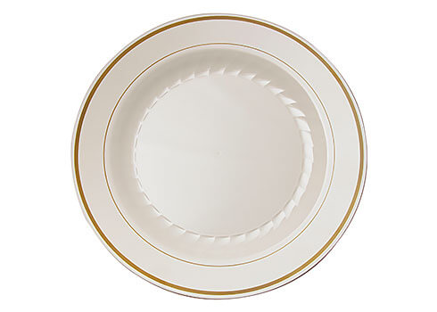 WNA Comet MP10IPREM 10 1/4″ Ivory Masterpiece Plastic Plate with Gold Accent Bands – 120/Case