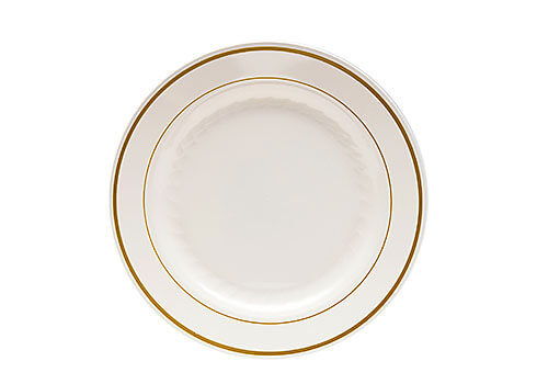 WNA Comet MP75IPREM 7 1/2″ Ivory Masterpiece Plastic Plate with Gold Accent Bands – 15/Pack