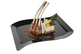 FINELINE, PARTY PLATES / BOWLS - COLORED / DESIGNED, PLASTIC PLATES / BOWLSFineline Wavetrends 1407-BO 7 1/2″ x 12″ Bone / Ivory Customizable Plastic Luncheon Plate – 120/Case$101.67